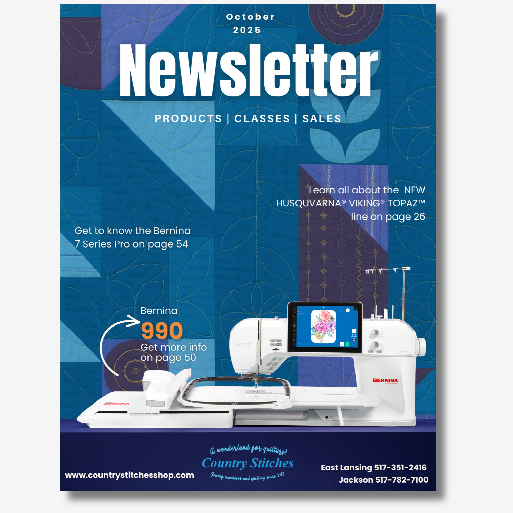 I took my first class at Country Stitches in 1984. Then bought a Huskvarna and a serger. Still use both of them!!! Great shop!!