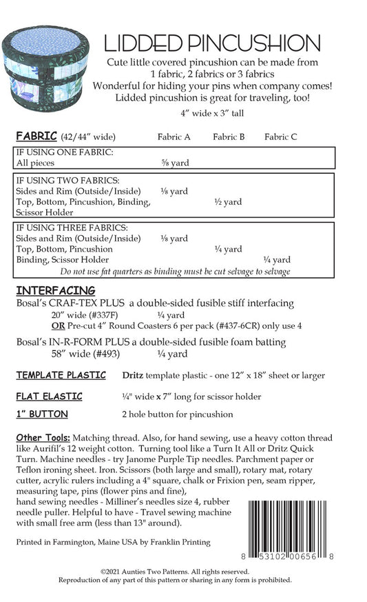 Aunties Two Patterns, Lidded Pincushion Pattern
