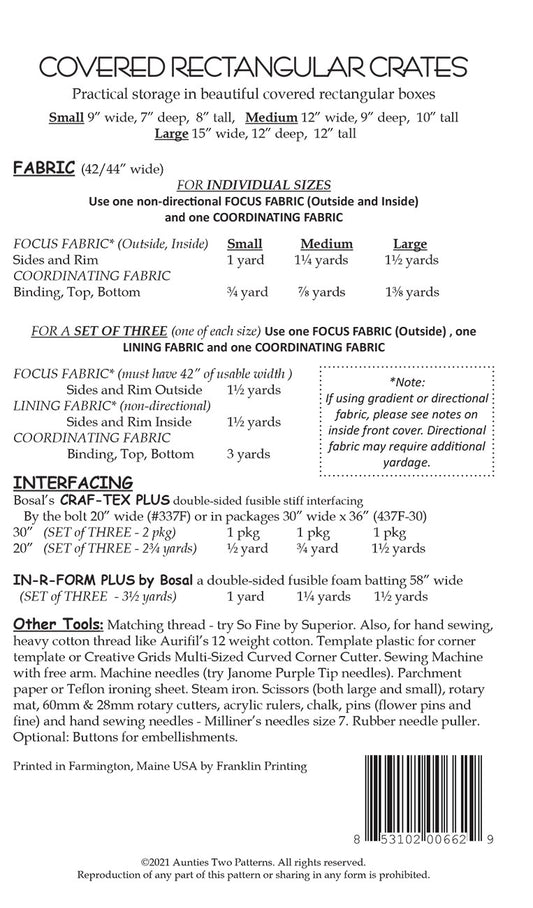 Aunties Two Patterns, Covered Rectangular Crates Pattern