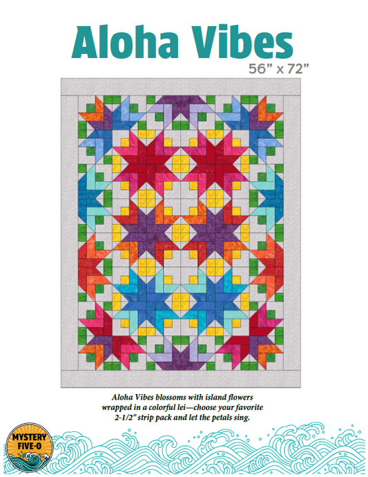 The Aloha Mystery Quilt is an exclusive Mystery Five-0 experience featuring: