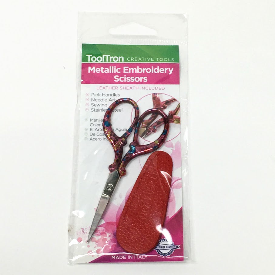 3.5" Metallic Embroidery Scissors w/ Leather Sheath