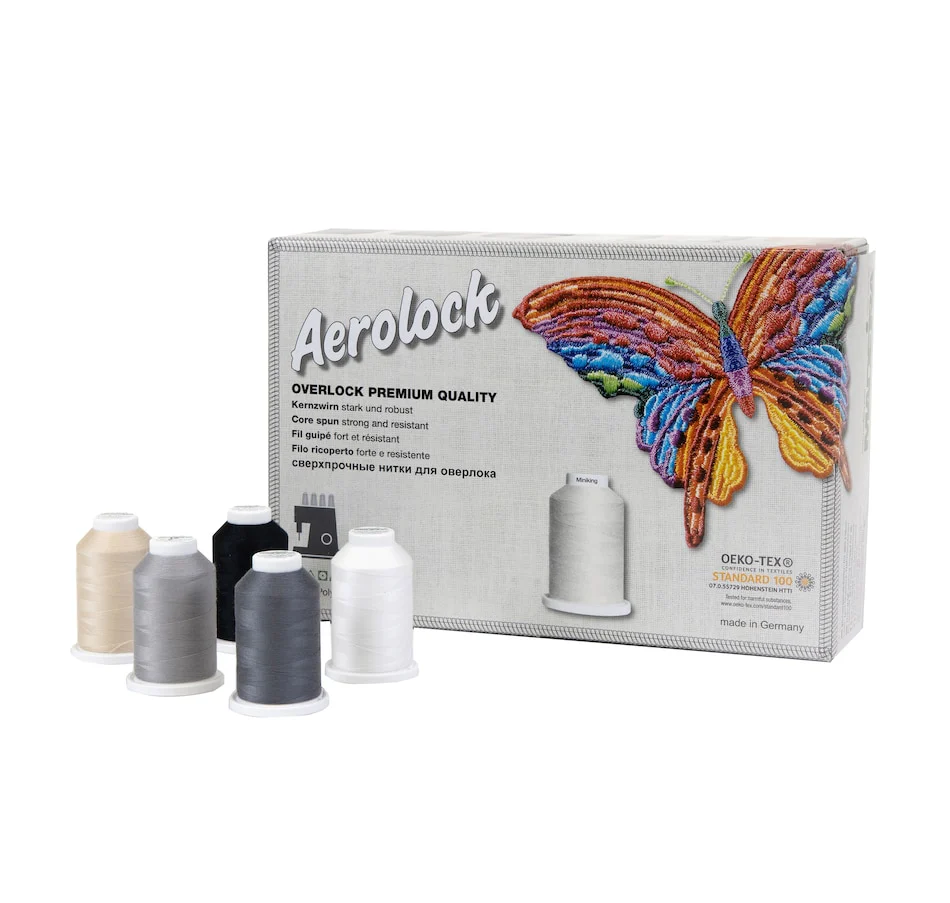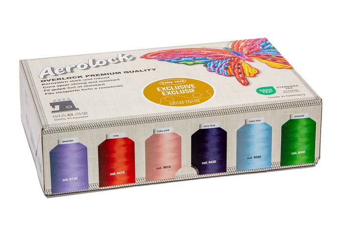 These overlock premium quality thread sets by Aerolock come in six colors with four spools of each color. Madeira Aerolock Premium Serger thread is a top quality, core-spun thread guaranteed to last through frequent washes or strain. Made of 100% core-spun polyester, this thread is perfect for sewing, overlock machines. Each spool holds 1,320 yards of Aerolock Thread.