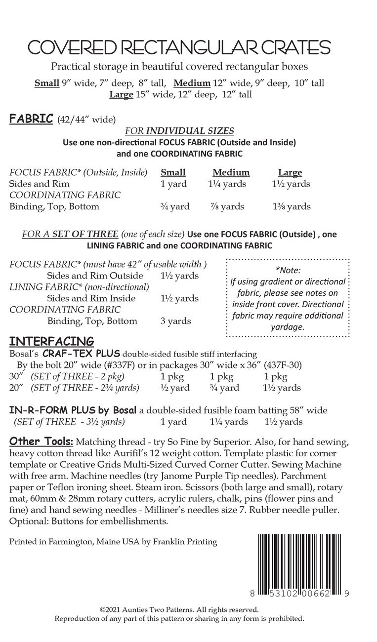 Aunties Two Patterns, Covered Rectangular Crates Pattern
