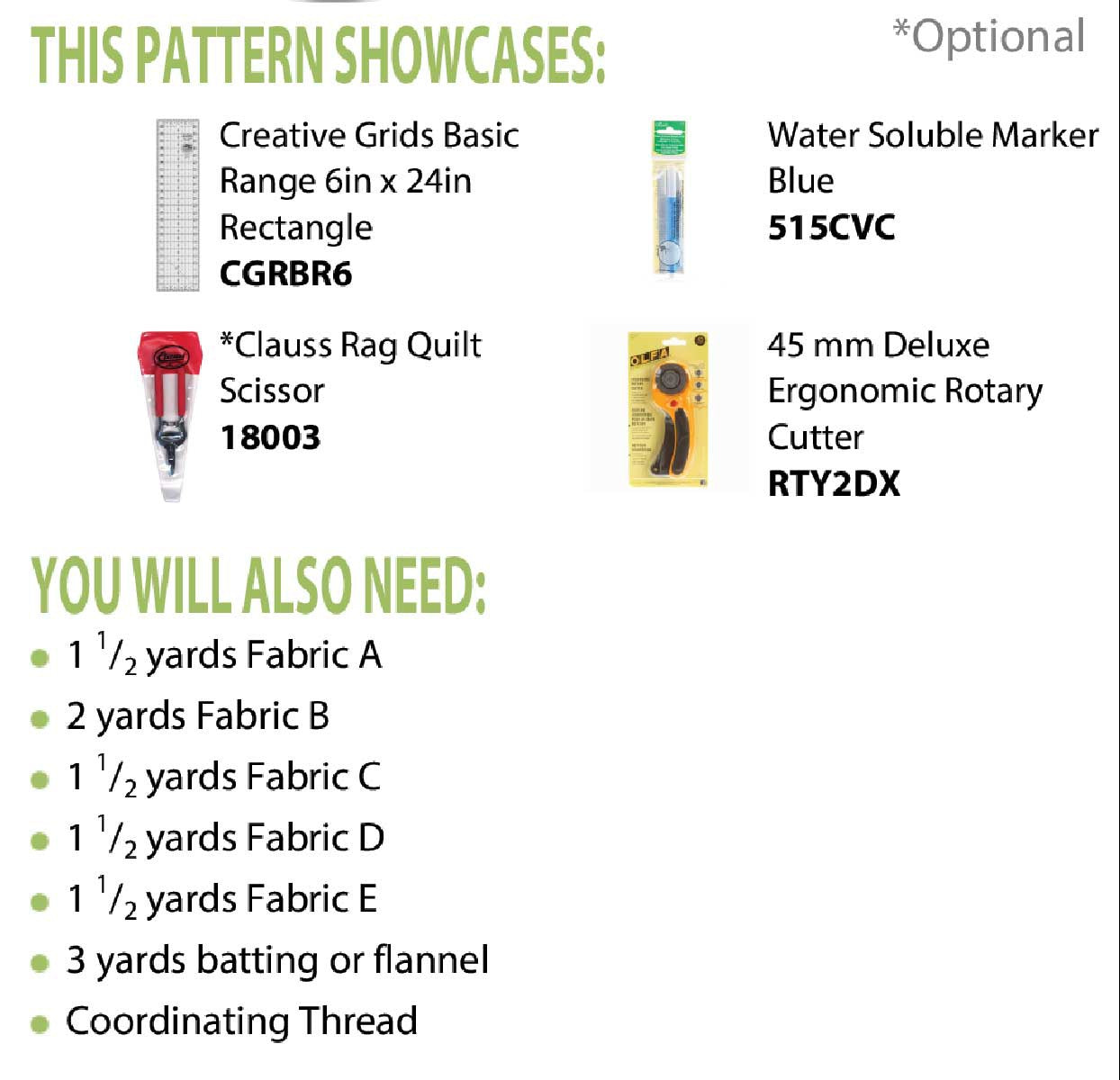 - Use Creative Grids 6" x 24" rectangle or Creative Grids 6 1/2" x 24 1/2"