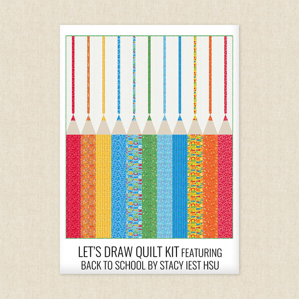 Transform your child's bedroom into a vibrant and inspiring learning space with Stacy Iest Hsu's Back to School Quilt Kit by Moda Fabrics! This quilt kit is colorful, fun, and unique, - perfect for your little artist. Get your child excited for the new school year with our one-of-a-kind quilt!
