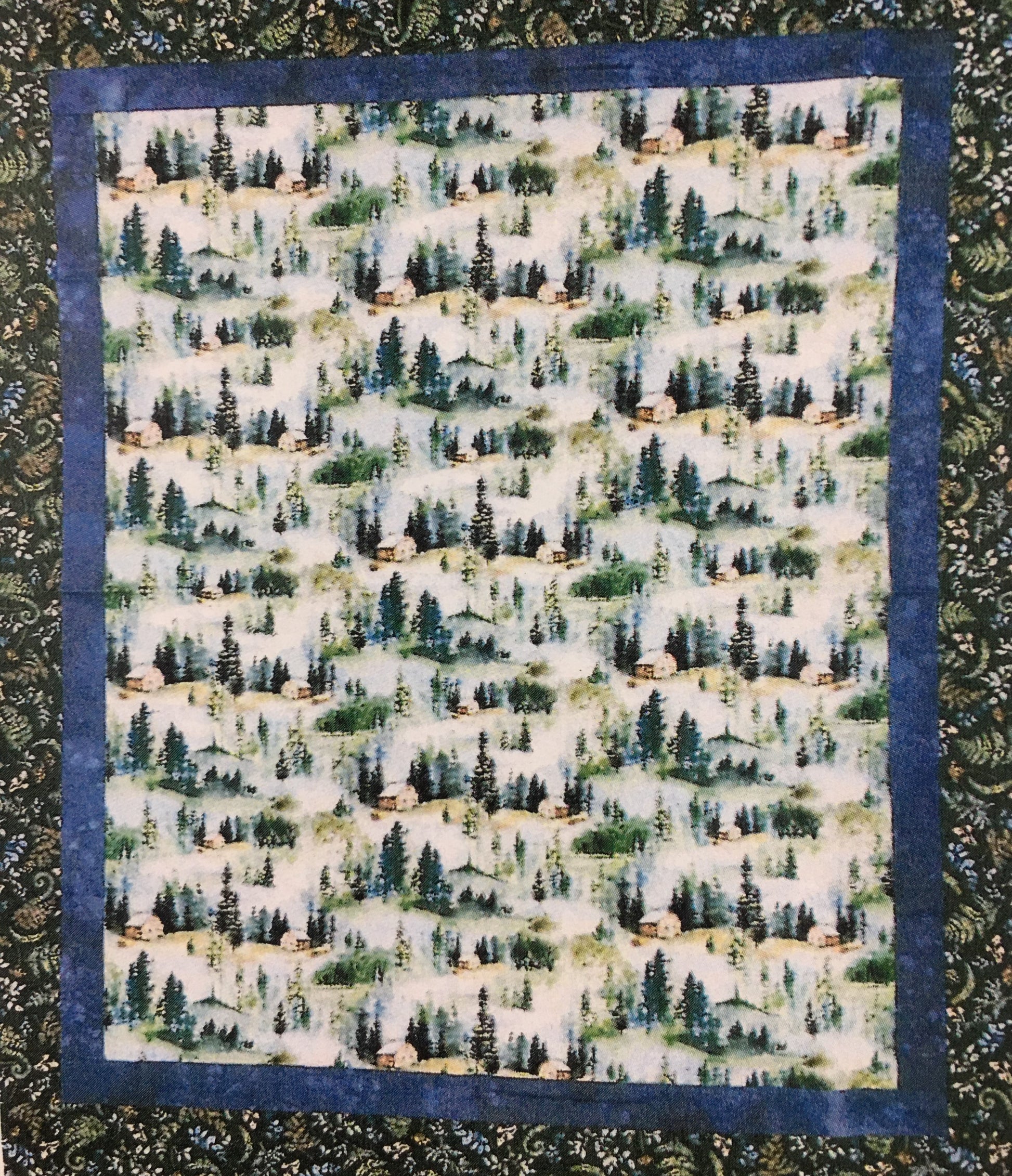 Enjoy the beauty of the great outdoors with this beautiful quilt kit. The Misty Vista Cabin fabric displays a watercolor style print made up of greens, tans, and ivory. Finished size is 49"x56" approx. Backing of 3 yards and batting (55"x62") not incuded.