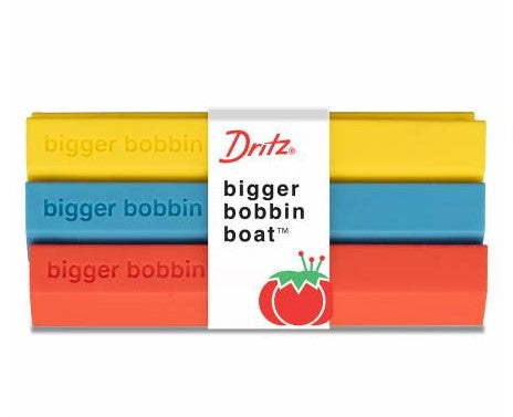 Keep your size M bobbins shipshape with the Dritz bigger bobbin boat, a compact storage solution that will ensure bobbins remain neatly stowed and tangle-free. 3 Pack. Size: 4-7/8" x 1-1/4". Each bobbin holds 10 size M bobbins. Curved interior “hugs” bobbins securely in place.