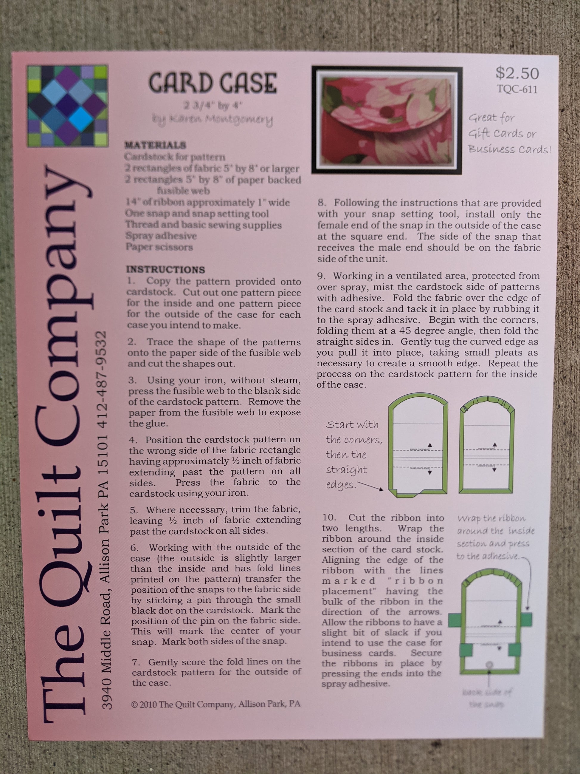 - Finished size 2 3/4" x 4"