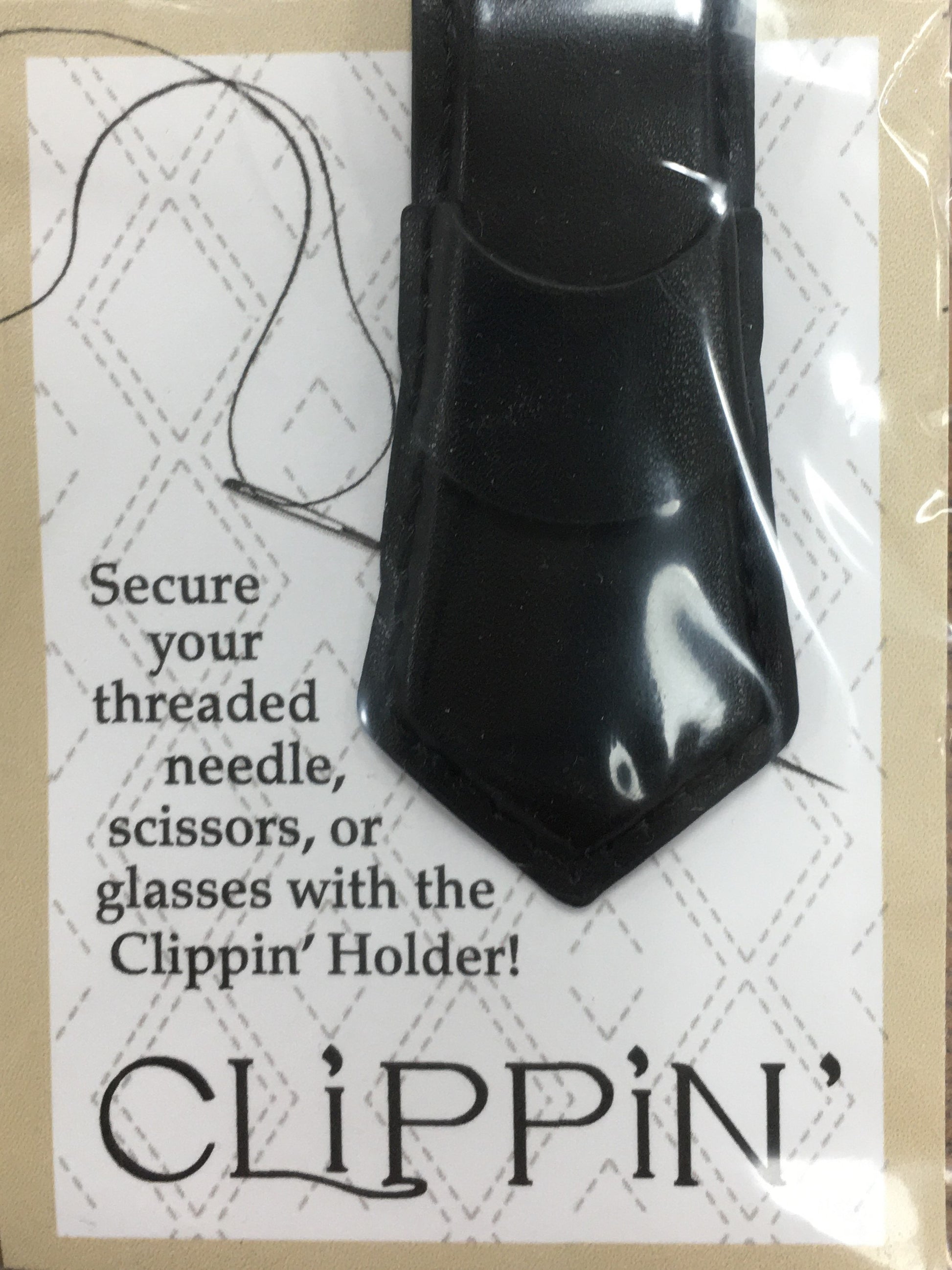 Keep your threaded needle safe and ready with the CLIPPIN' HOLDER. Designed to securely hold your needle in place, scissors, or glasses! A simple yet essential tool for every stitcher.
