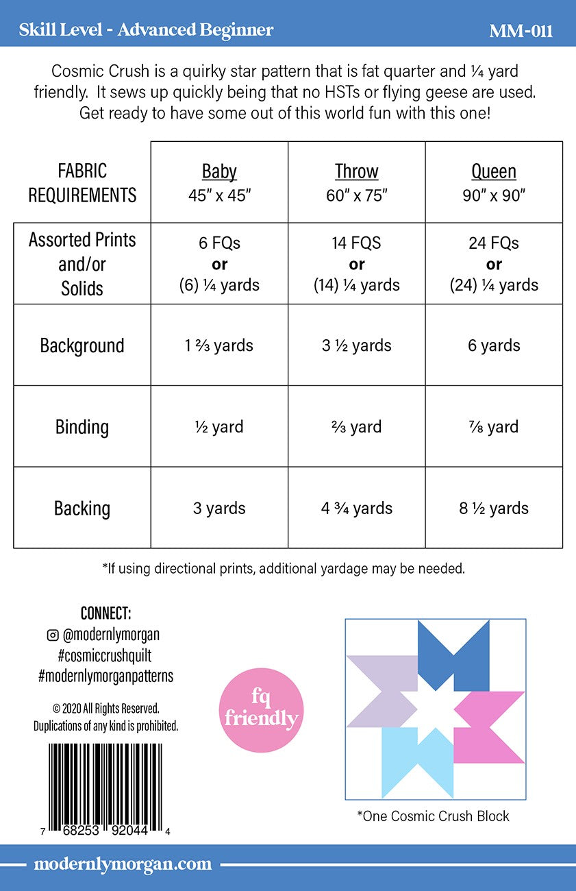 - A quirky star pattern that is fat quarter and 1/4 yard friendly