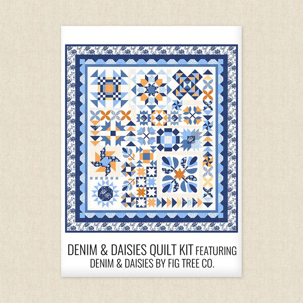 Introducing the Denim & Daisies Quilt Kit by Fig Tree & Co from Moda Fabrics - the perfect way to add a touch of rustic charm and floral beauty to your home decor! This quilt features a unique combination of warm- and cool-toned florals, creating a cozy and inviting ambiance. Bring a touch of nature indoors and elevate your space with this one-of-a-kind quilt.