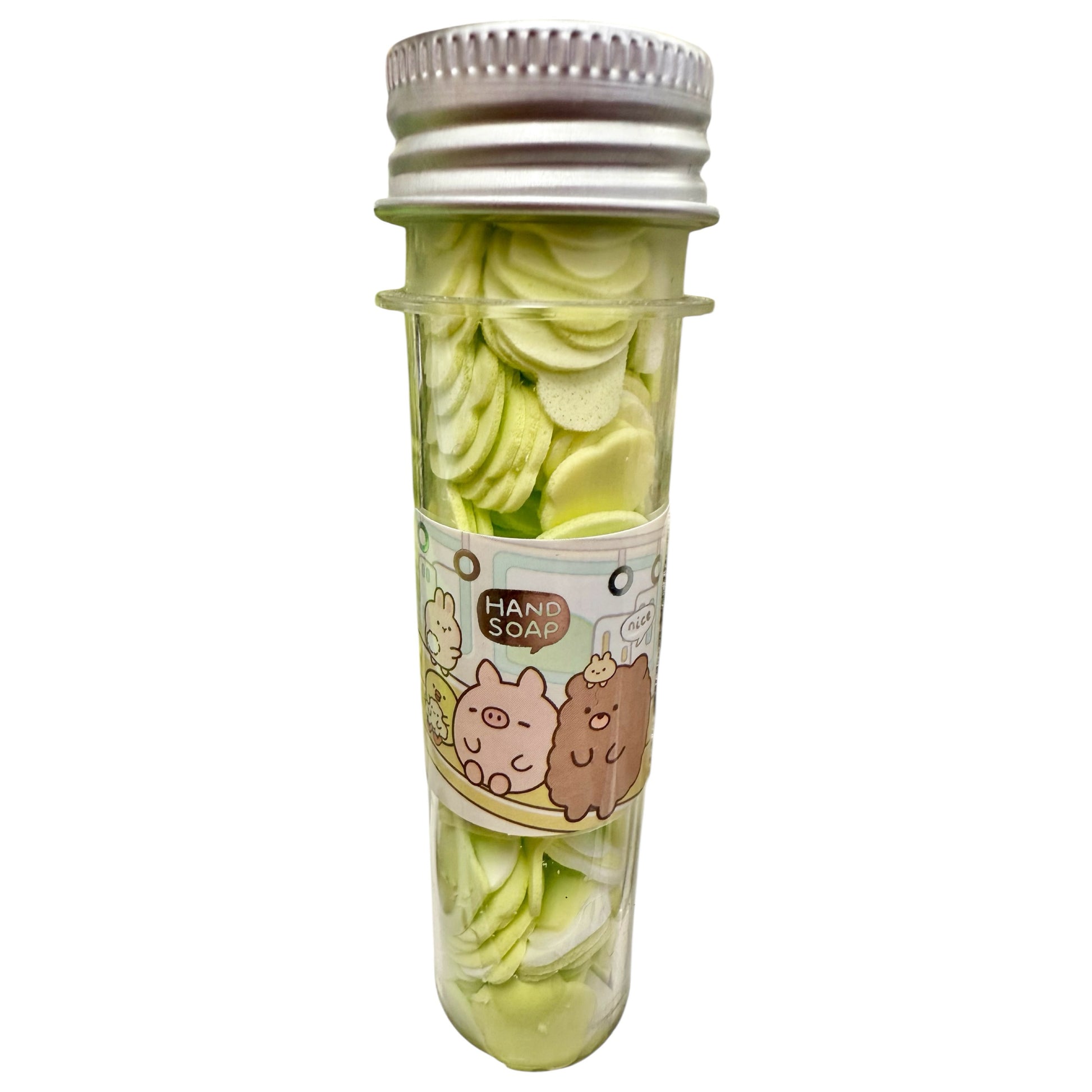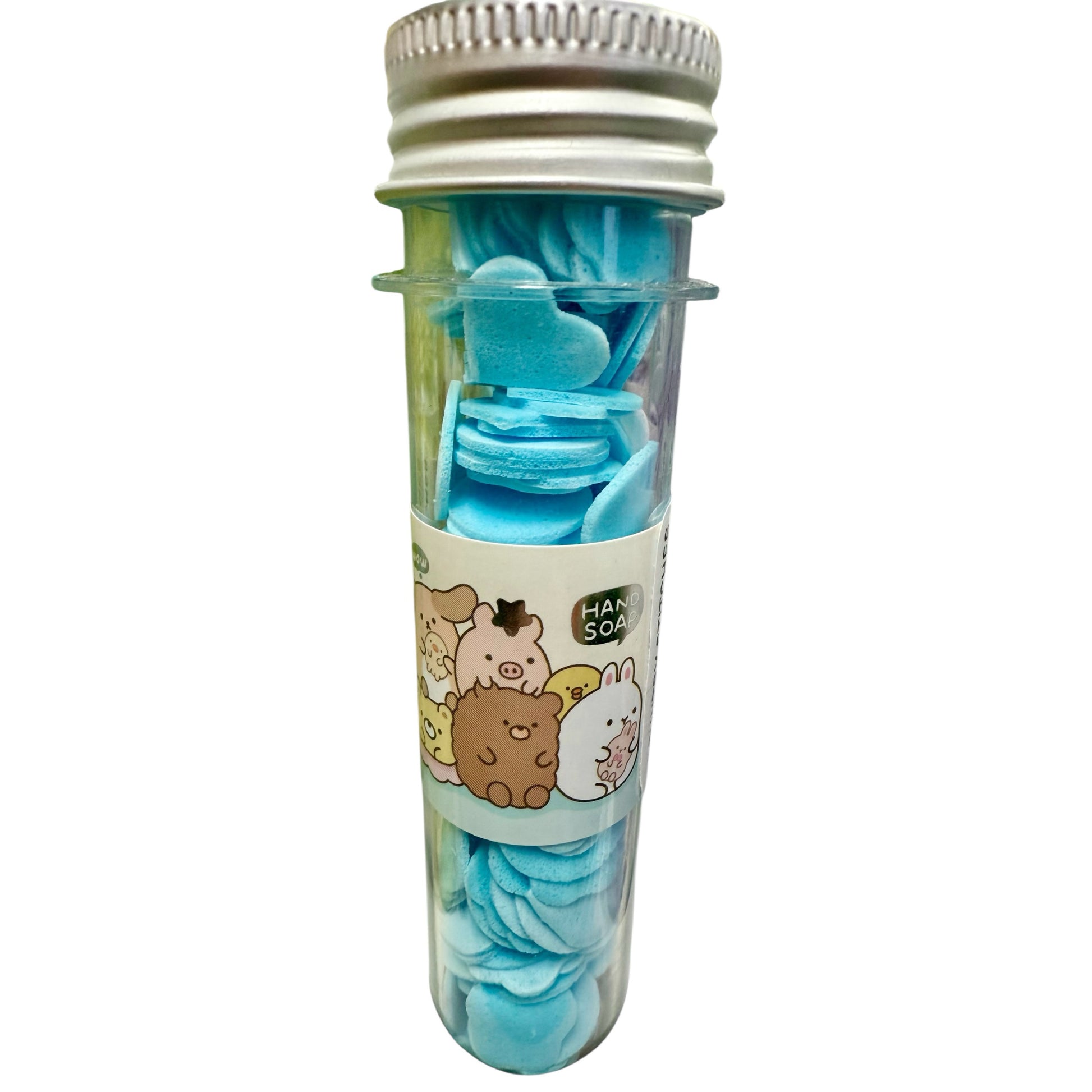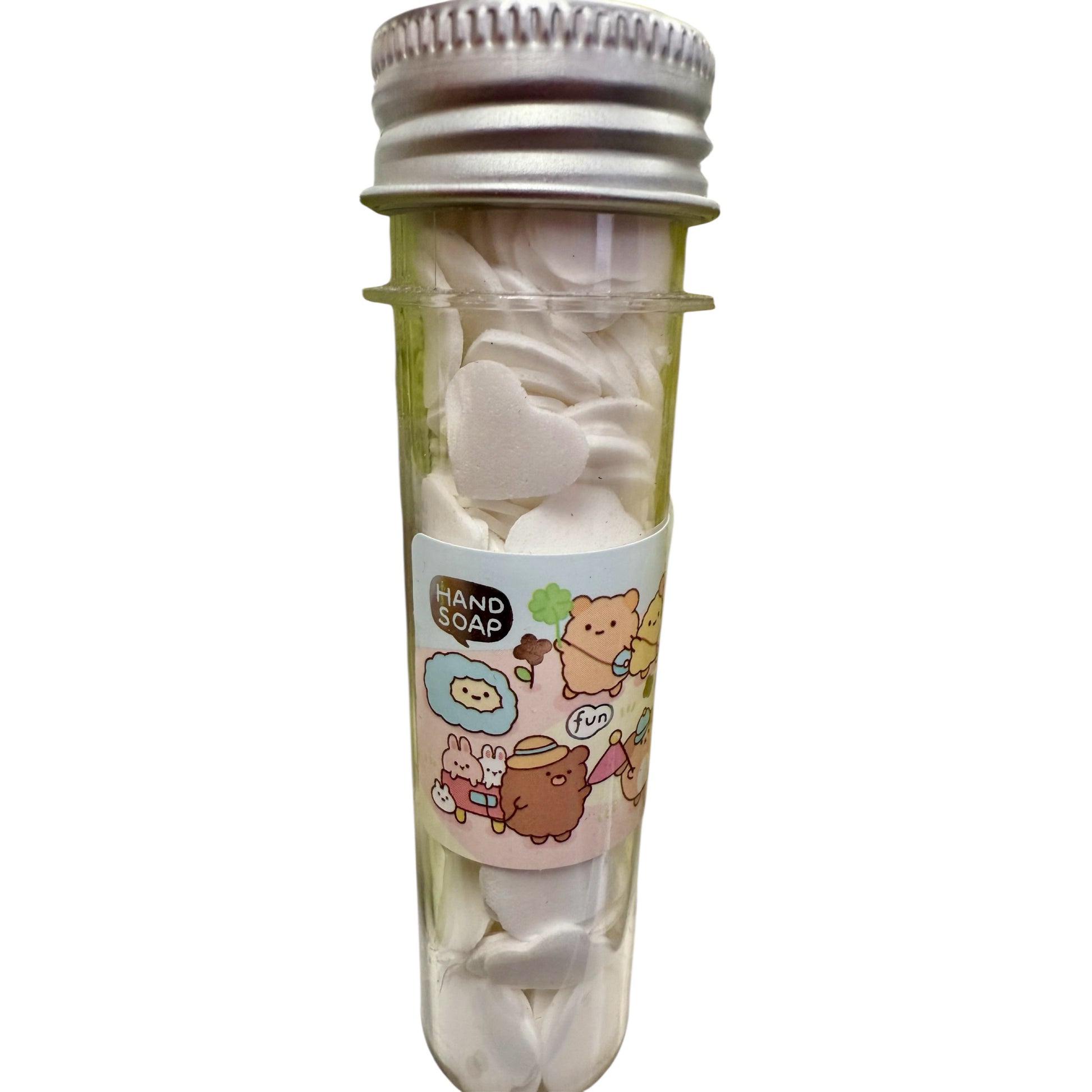Carry this cute little container with you and have hand soap whenever you need it. The soap comes in thin, cute shapes. Just take one and add water and wash away the dirt.