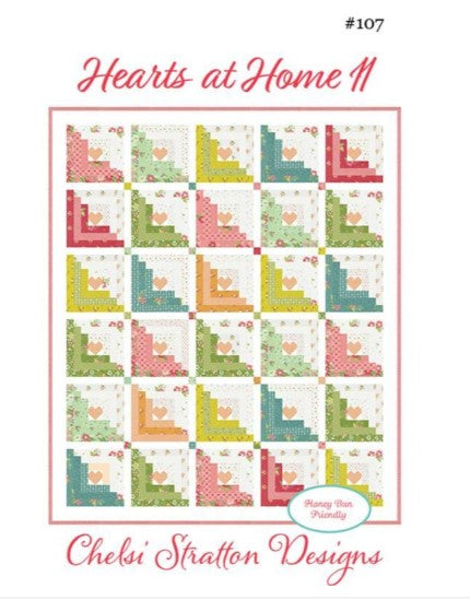 Hearts at Home II Quilt Pattern features cozy blocks with sweet hearts, perfectly pieced with Strawberry Lemonade fabric from Moda. This honey bun-friendly quilt makes for a perfect quick and easy project.