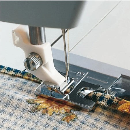 Provides quick and consistent narrow hemming in light to medium weight fabrics. When hemming medium weight fabrics such as napkin edges, curtains, and ruffles, use straight stitch length 2.5 to 3 mm. Decorative stitches can also be used.