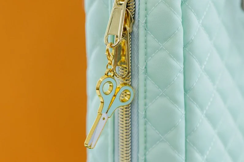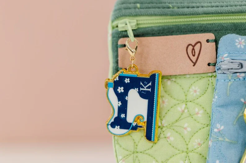 Elevate your sewing game with Kimberbell Zipper Charms! This pack of 3 charms will add a touch of sparkle and functionality to your zippers. This pack features a sewing machine, sewing scissors, and an embroidery hoop.