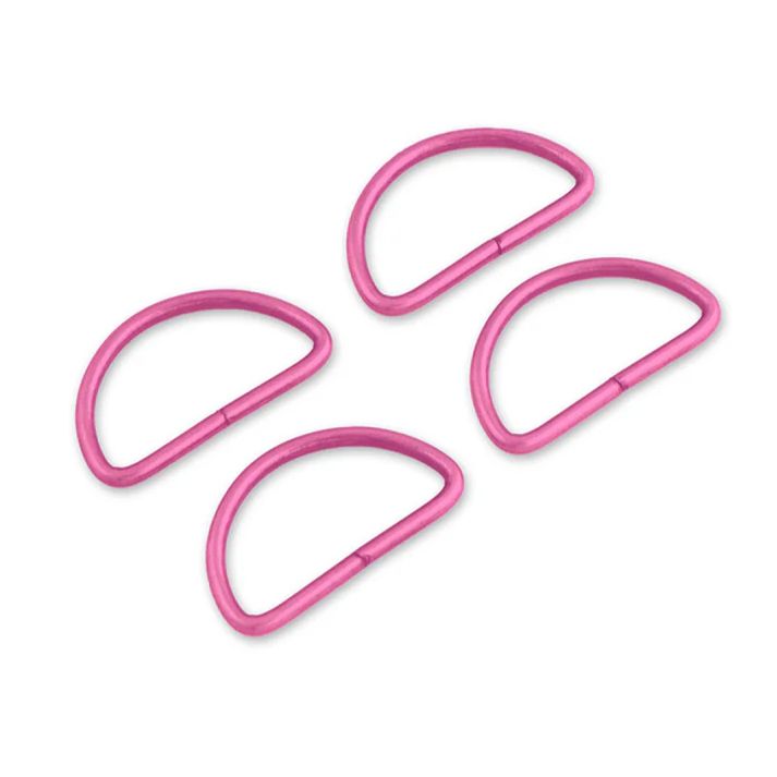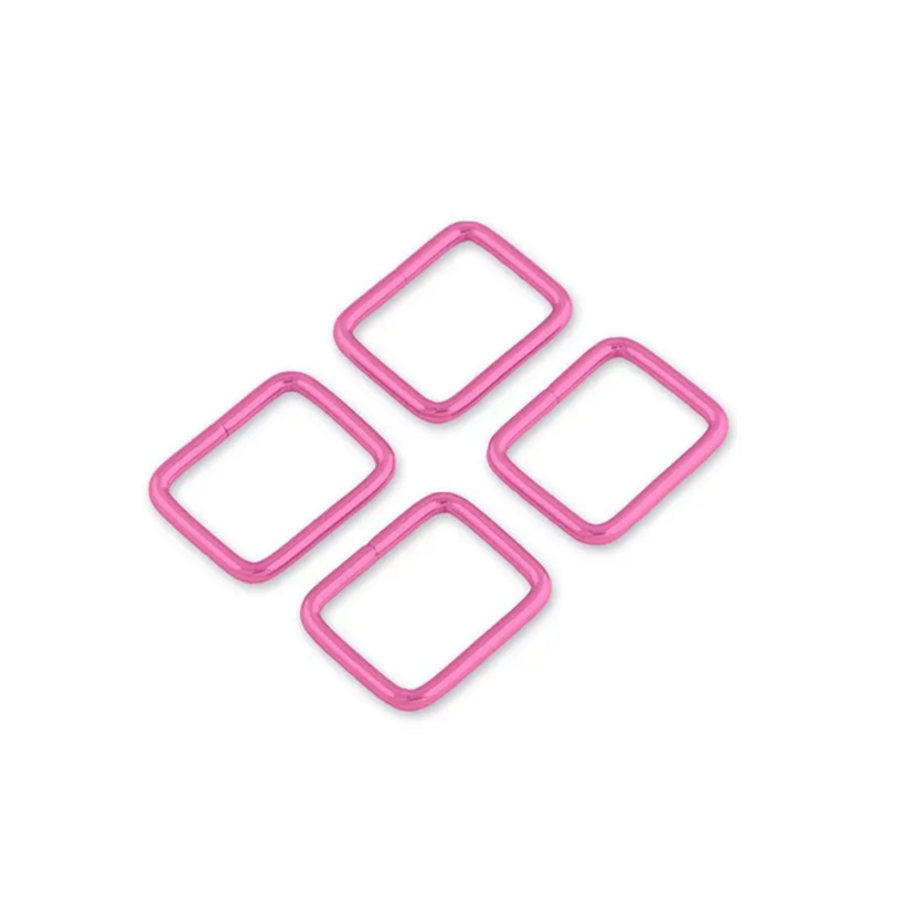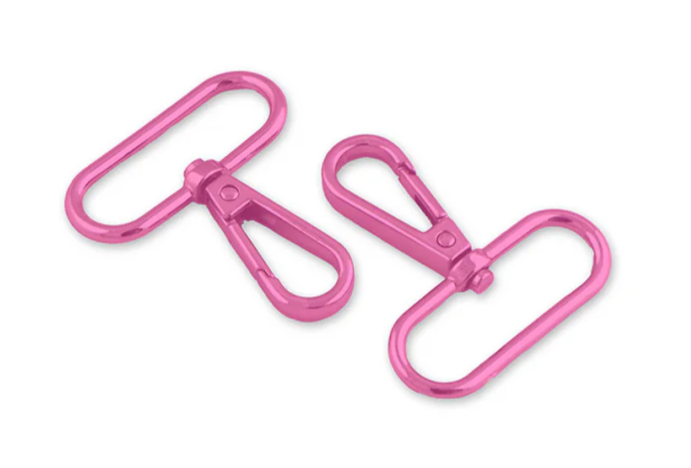Metal hardware listed has a shiny pink finish.