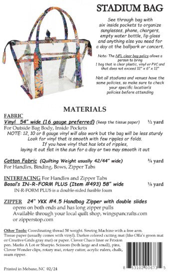Use your favorite team fabric to make this see through bag with six inside pockets