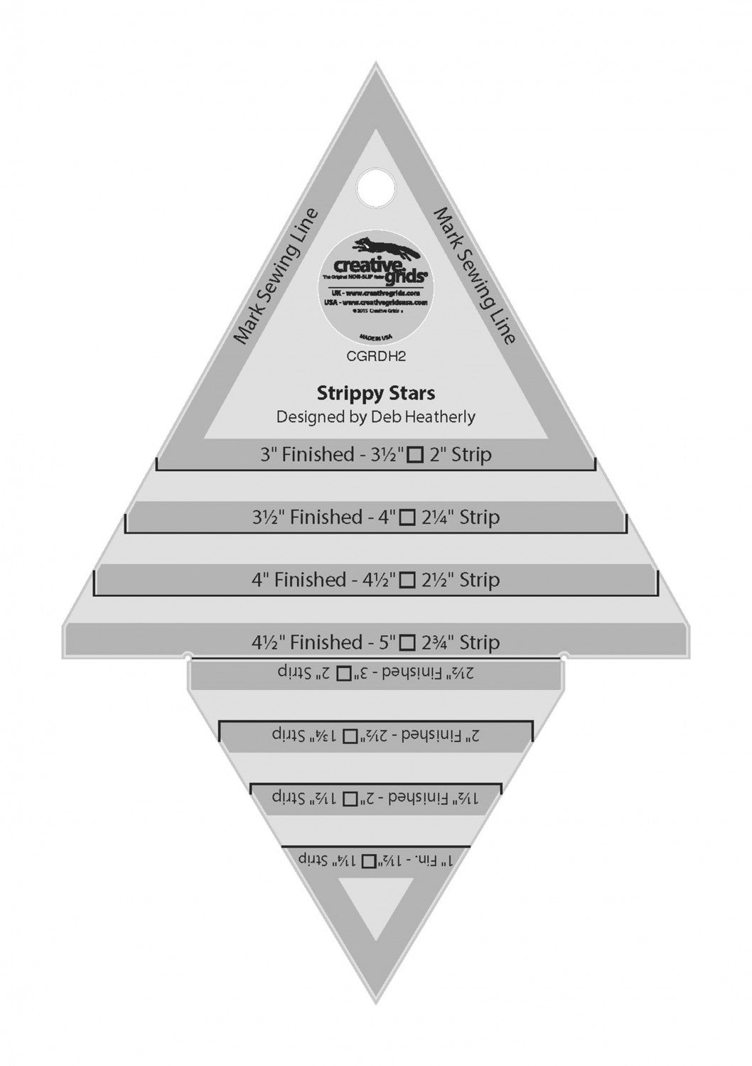 - This 5" x 7 1/2" ruler makes star point units quickly and easily in 8 different finished sizes from 1-1/2" to 4-1/2".